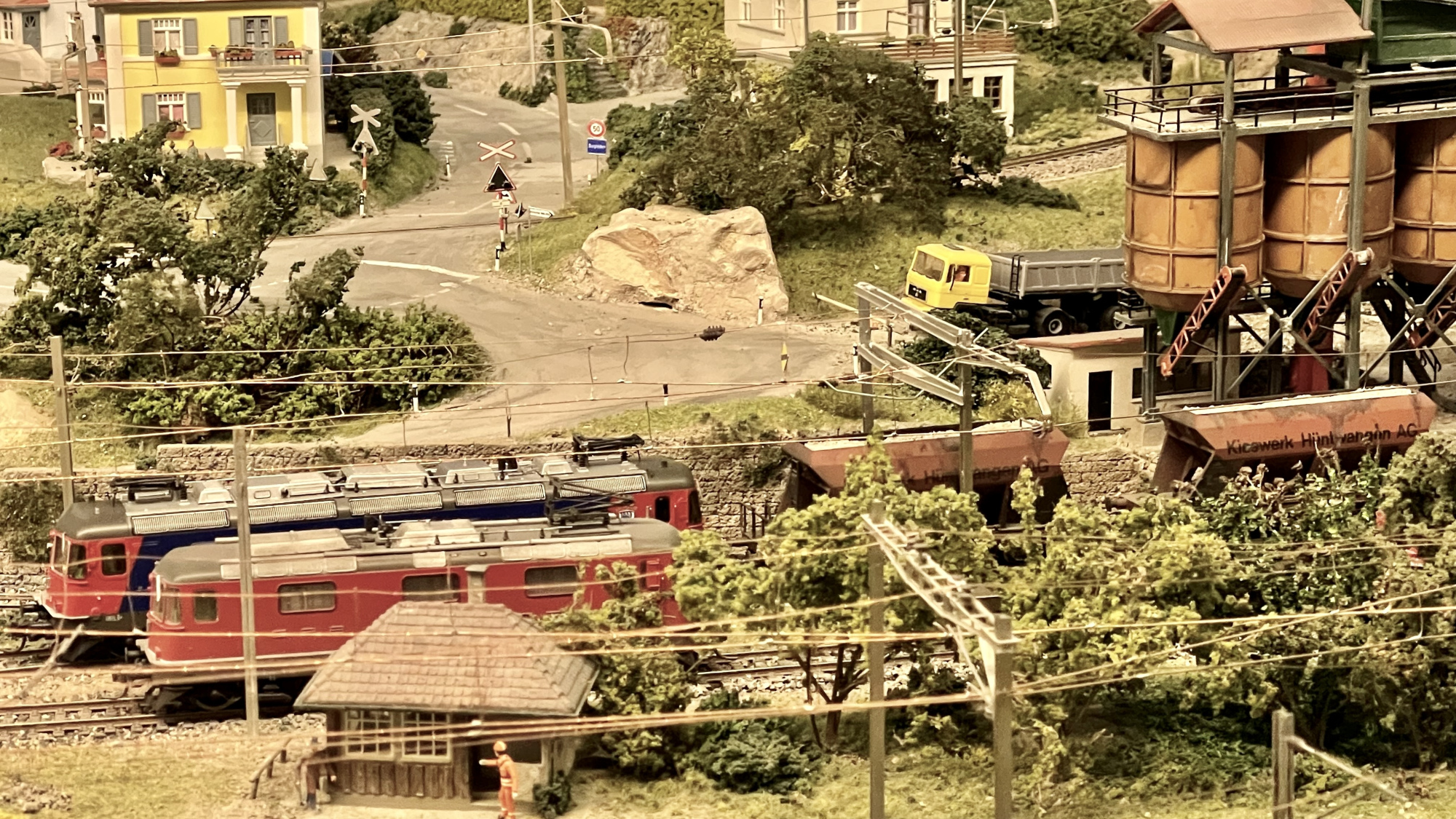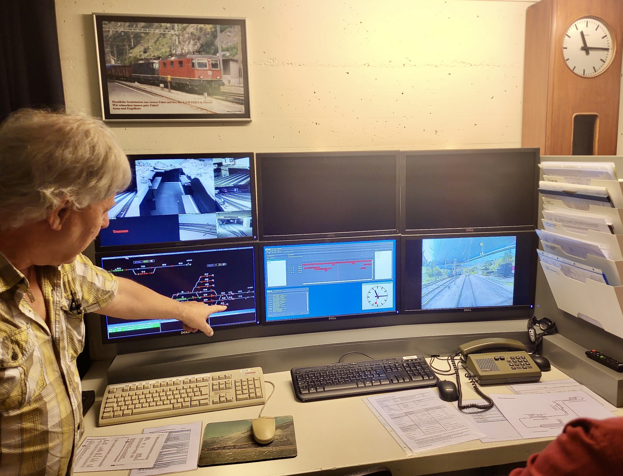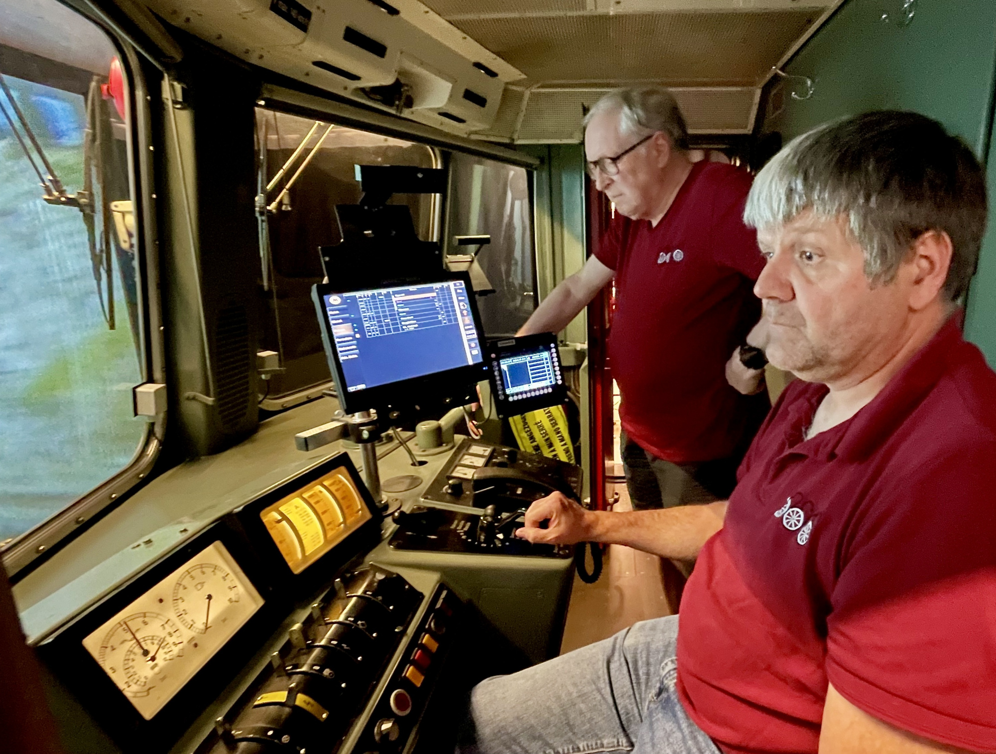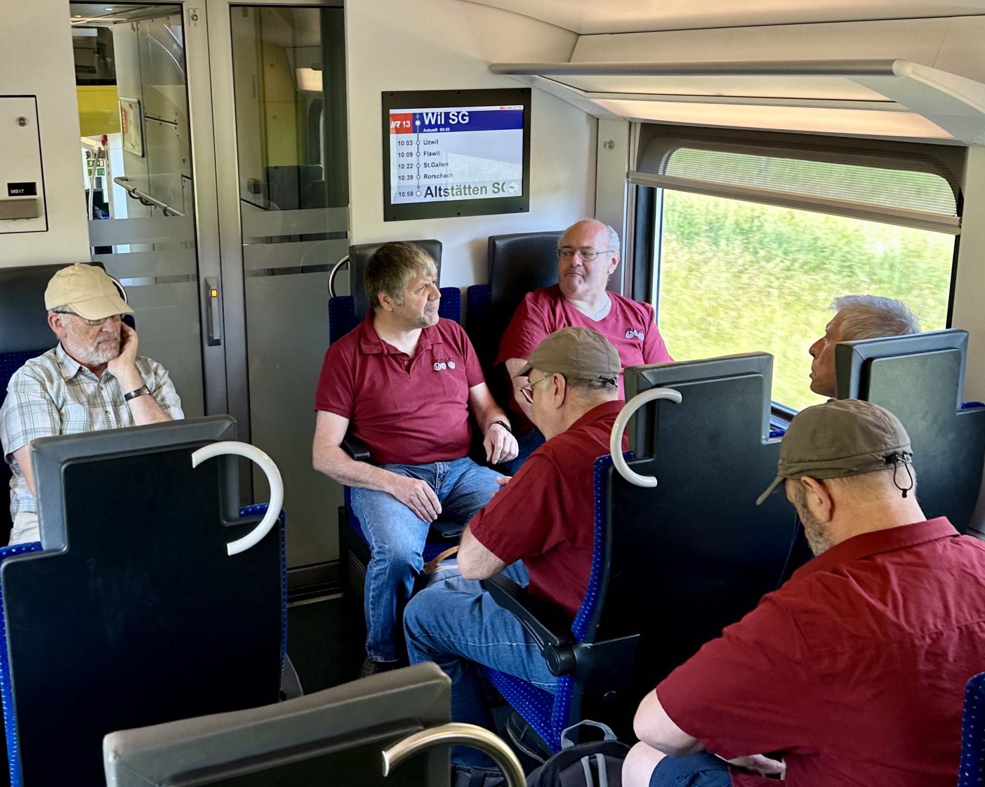 Präsident Philipp Geisser erklärte uns die perfekt gestaltete Modelleisenbahn-Anlage in Spur H0/H0m und zusammen mit Christian Heer demonstrierte er uns den Fahrbetrieb, die Stellpulte und den voll funktionsfähigen Führerstand einer Re 4/4 II. Wir staunten und waren überwältigt. Nach Mittagessen, viel «Bähnele» auf der Anlage und im Führerstand und Kaffee mit Kuchen fühlten wir uns so wohl und hatten so viel Spass und Freude, dass wir beinahe die Zeit vergassen und erst kurz vor 18:00 wieder unsere Rückfahrt antraten.