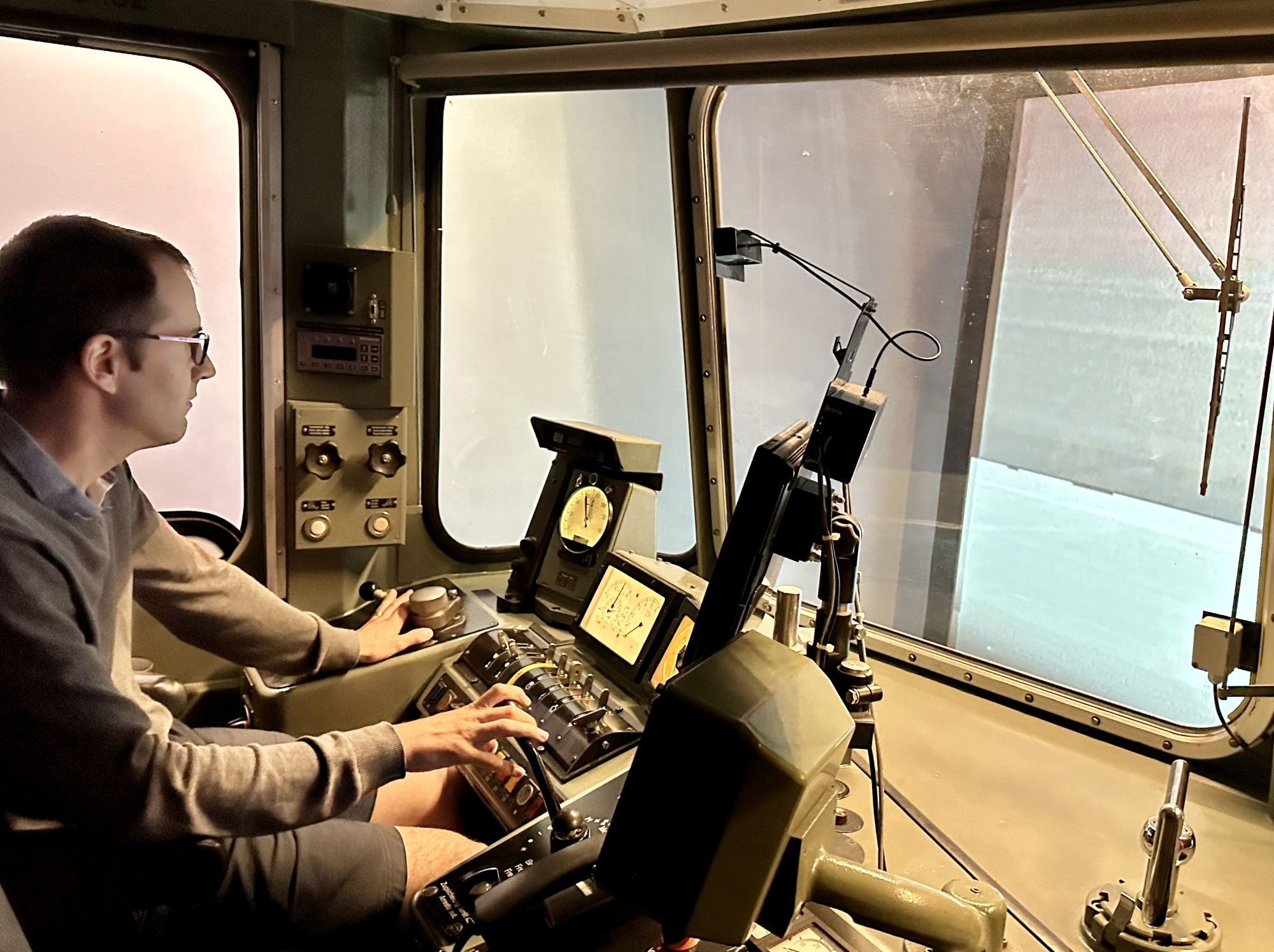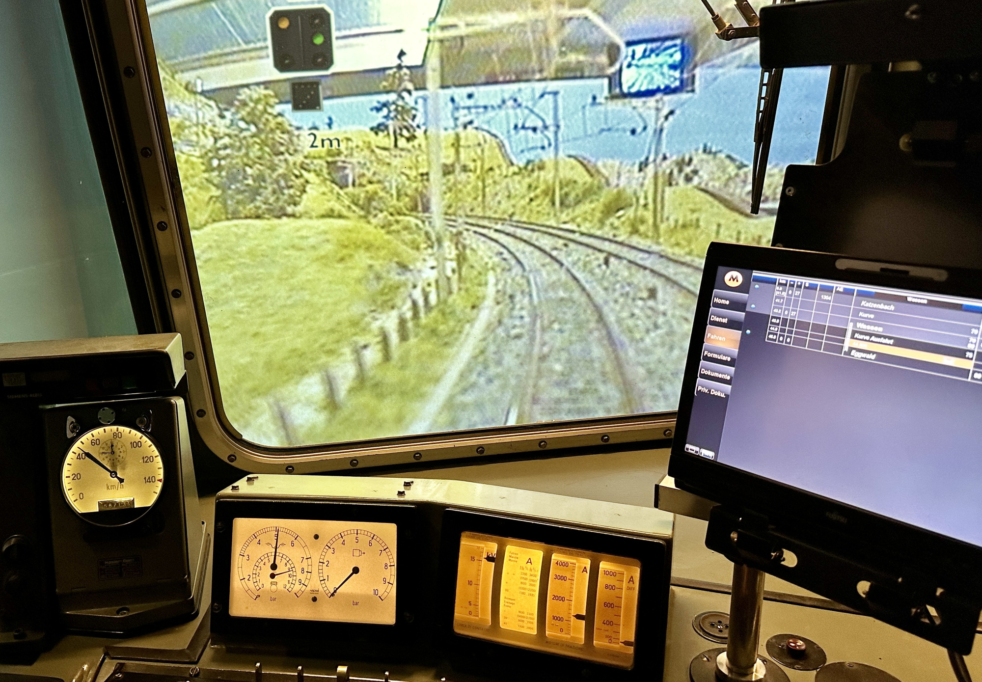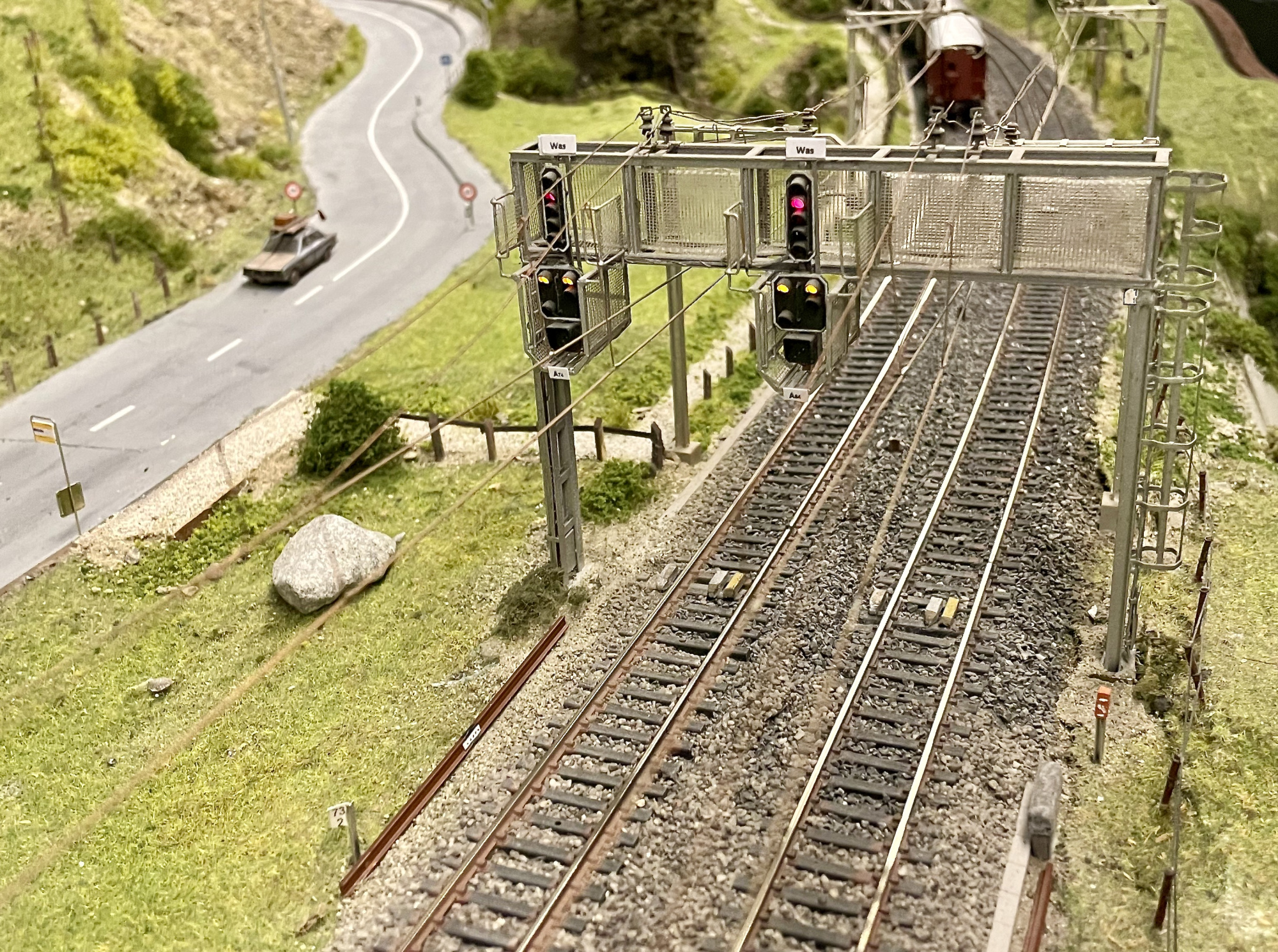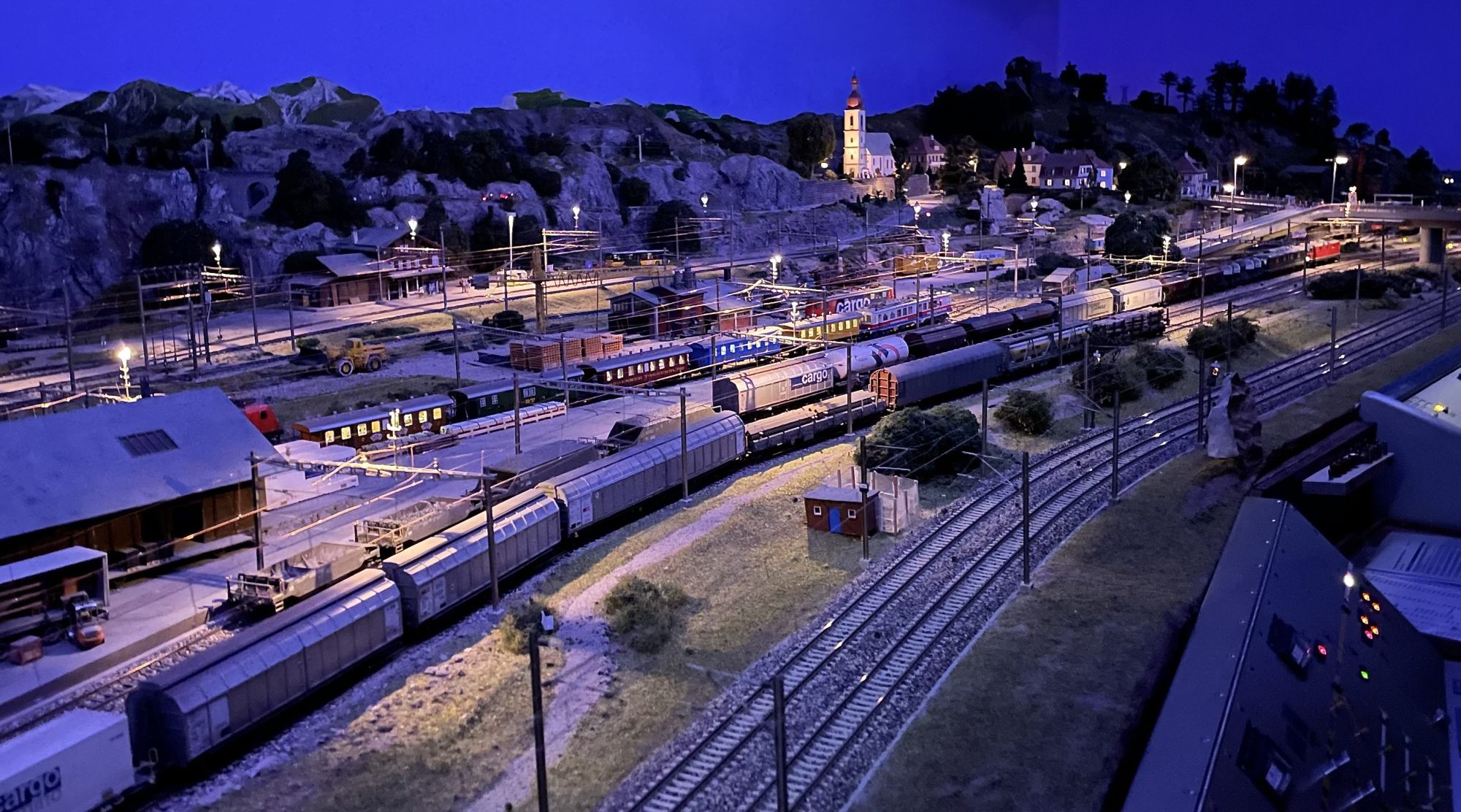 Präsident Philipp Geisser erklärte uns die perfekt gestaltete Modelleisenbahn-Anlage in Spur H0/H0m und zusammen mit Christian Heer demonstrierte er uns den Fahrbetrieb, die Stellpulte und den voll funktionsfähigen Führerstand einer Re 4/4 II. Wir staunten und waren überwältigt. Nach Mittagessen, viel «Bähnele» auf der Anlage und im Führerstand und Kaffee mit Kuchen fühlten wir uns so wohl und hatten so viel Spass und Freude, dass wir beinahe die Zeit vergassen und erst kurz vor 18:00 wieder unsere Rückfahrt antraten.